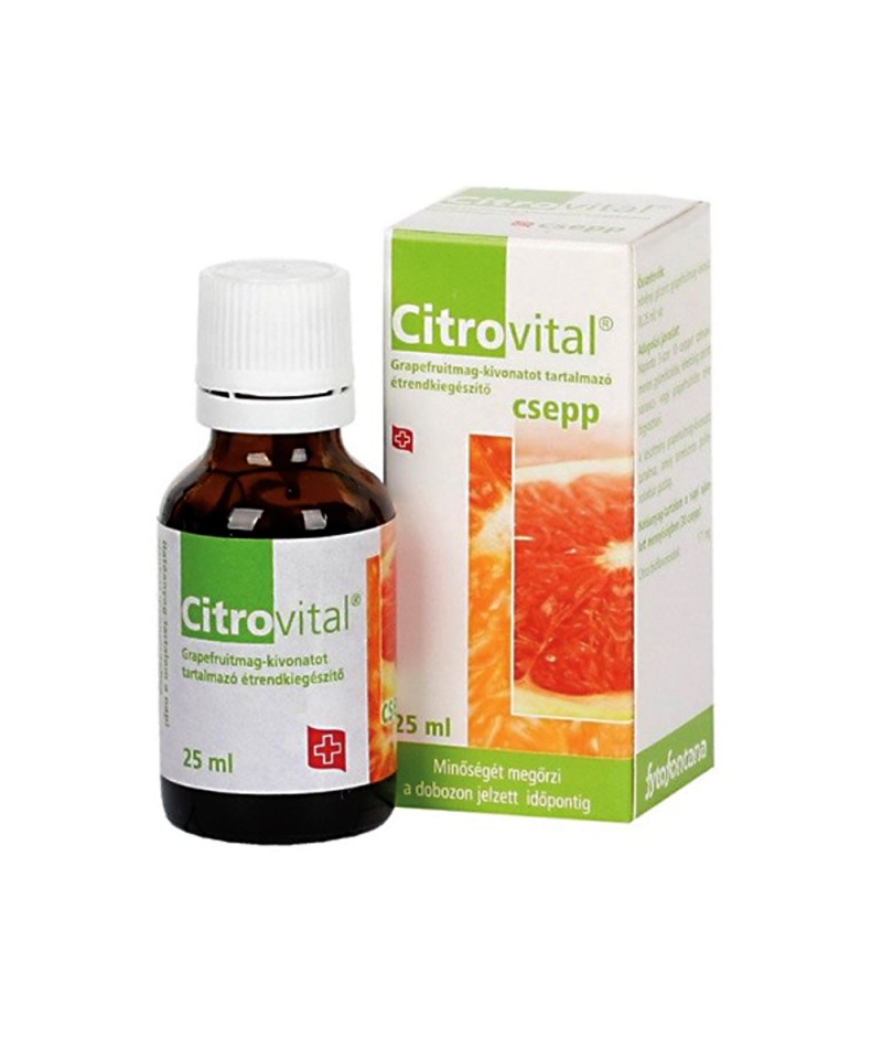 Citrovital picături  – Extract din seminţe de grapefruit -Substanţa activă împiedică înmulţirea bacteriilor, viruşilor şi fungilor. Are efect imunostimulent, ajută organismul în caz de răceală, infecţii sau inflamaţii.